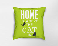 Perfect for living rooms, bedrooms, and lounge areas, our "Home is where the cat is" pillow will add a vibrant accent to your interior decor. Show your love for pets with this beautiful spun polyester pillow.