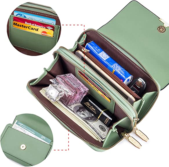 - 👛SMALL SIZE BUT ROOMY SPACE - 2 x zippered main pocket and 1 x interior zipper coin pocket, capable for storing your daily necessities,such as phone,keys, lipsticks, cash,coins,napkin paper and other small items.3 x card slots for credit cards,ID,Driver's License.1 x front pocket fit cards,checkbook,passport,receipt.