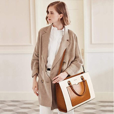 ●15.6 INCH LAPTOP BAG FOR WOMEN - A fresh take on a modern classic style, the laptop briefcase is crafted in Vintage Oil Wax Vegan Leather and finished with a premium silver hardware logo. Perfectly poised and ready for the day, the BROMEN laptop bag takes you anywhere you go in beautiful style.